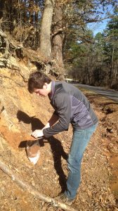 Varner takes a sand sample from the McNairy formation located in Mississippi and Tennessee. Submitted photo by Jennifer Gifford